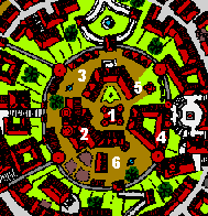 Bauwerk ist der Torre della Castello (1). Dieser ehemalige Bergfried