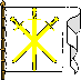 blauem Tuch; (II) Goldener Adler vor drei gekreuzten roten Schwertern